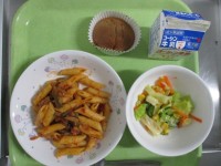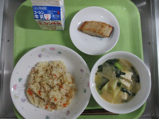 ・こぎつねごはん・魚(さわら)の香味焼き・みそ汁・牛乳
