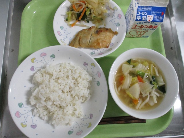 ・ごはん・魚の西京味噌焼き・野菜のごま酢あえ・うどん入り吉野汁・牛乳