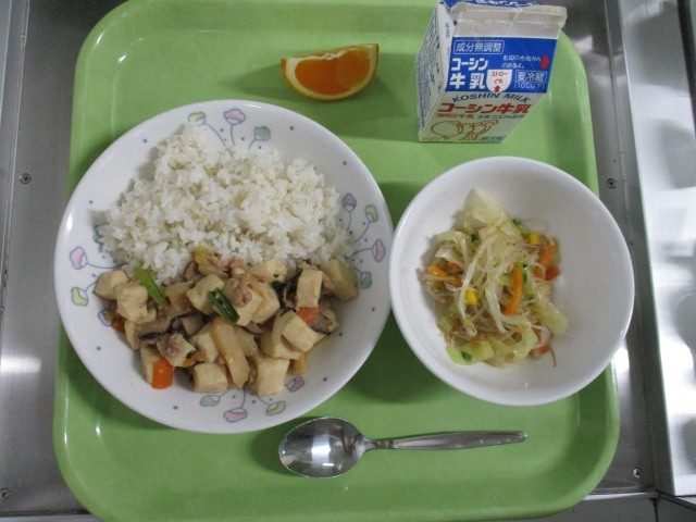 ・ごはん・豆腐の中華煮・春雨サラダ・くだもの・牛乳
