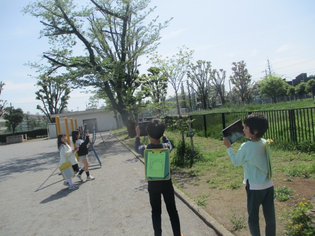 3年生の総合の学習がはじまりました。校庭の自然を調べてまとめます。この日は木を選びました。