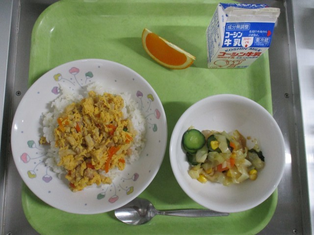 ・変わり親子丼・和風サラダ・くだもの(清見オレンジ)・牛乳
