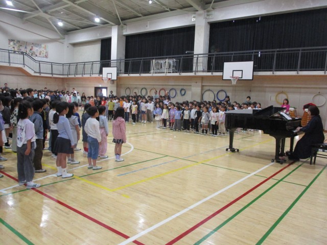 今年度初めての音楽朝会が4月24日(金)にあり、全校児童で校歌を歌いました。すてきな歌声が体育館中に響き渡り、とても居心地の良い空間になりました。