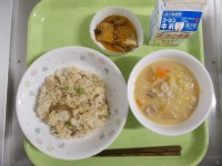 ・じゃことわかめのごはん・あんかけ卵焼き・ごまみそけんちん汁・牛乳