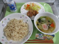 ・ごはん・揚げ餃子・中華スープ・牛乳