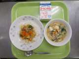 秋野菜のカレーライス・海藻サラダ・牛乳 さつまいも・れんこん・エリンギ・しめ...