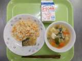 板橋区産のにんじんごはん・鯖のごまみそ焼き・五目汁・牛乳 ふれあい農園会給食...