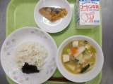 きのこスープスパゲッティー・わかめサラダ・ココアケーキ・牛乳 一日早く、明日の...