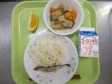 きびいりごはん・ししゃものピリ辛焼き・野菜のうま煮・甘夏みかん・牛乳 ししゃも...
