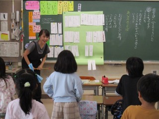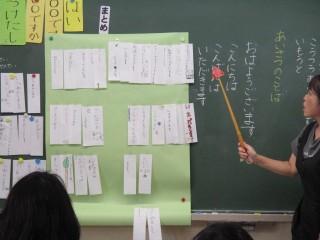 1年生は、あいさつの種類や大切さについて学習をしました。どのような挨拶があるか考え、短冊に書き始めると、模造紙がすぐにいっぱいになりました。お友達と出会ったときに黙って通り過ぎるのと、どのような気持ちになるか「さみしい」「怒っているのかな」「具合いが悪いのかな」…いろいろな考えが出ました。「あいさつの木」という頑張りカードに、これから取り組んでいきます。