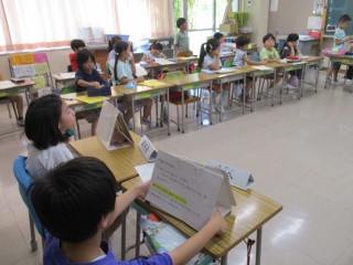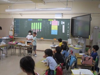 2年生は、学級活動を行いました。議題は「ボッチャ大会をしよう」です。ボッチャのルールについて考え、皆で意見を出し合いました。それぞれの意見に対する賛成意見・反対意見を〇印で貼っていったり、意見を合体させたりしながら、司会や書記を中心に話し合いを進めることができました。