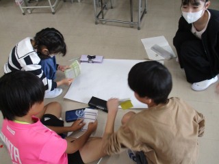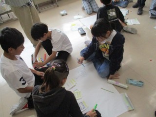 4年生では、社会科で「地震にそなえる街づくり」の学習を行っています。ここまで、自分が選んだ方法で「学校」「地域」「東京都」での取組をそれぞれ調べてきましたので、今日は、その3つの関連についてグループごとに「関係図」にまとめる時間です。それぞれが主体的に調べた内容を持ち寄るため、グループの話合いにも深まりが見られました。