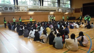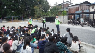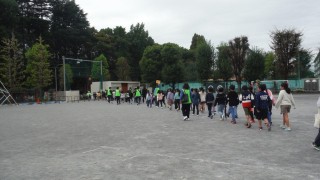 10月の避難訓練は、三次避難場所へ避難することをねらいとした訓練です。水害を想定し、高台にある紅梅小学校へ歩いて避難をしました。今回も、子どもたちは皆本番を想定しながら、真剣に取り組みました。道中の安全確保のため、多くのボランティアの皆様に見守り・誘導をしていただきましたので、最後に皆でお礼をお伝えしました。ご協力、ありがとうございました。