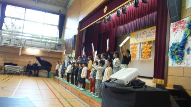 音楽会のスローガン「思いを つなげよう とどけよう♪」のもと、歌詞の意味や演奏に込める思いを観にいらしてくださった皆さんにお届けできるように、全学年、気持ちを込めて演奏しました。最後は、お客様を囲んで全校児童で校歌を歌い、たくさんの拍手をいただきました。