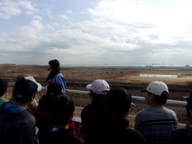 中央防波堤ゴミ埋立処分場では、映像を見てゴミに関する課題について学んだあと、バス車内から埋め立て地を見学しました。実際に見学することで、限りある埋め立て地を少しでも長く使うために、3Rをさらに意識しようと考えていました。