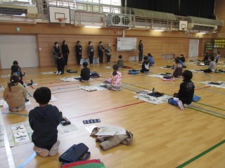 体育館で「書き初め大会」を行いました。皆、集中して取り組み、2学期から冬休みまで一生懸命に練習をしてきた成果を発揮することができました。当日はボランティアの皆様にお越しいただき、子どもたちへのアドバイスや励まし、準備や片付け等へご協力いただきました。ありがとうございました。