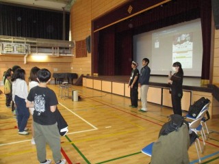 旧高島第七小学校の校舎の取り壊しが近づいてきたことを受け、3月14日(土)に板橋区高島平まちづくり推進課主催で、高七小の校舎に向けてプロジェクションマッピング投影を行います。「わっくわく!未来の高島平にやってきた仲間たち」をテーマに子どもたちからイラストを募集するため、企画の中心となられている「きのこさん」が説明にいらしてくださいました。自分の絵がプロジェクションマッピングになるということで、子どもたちもワクワクしながら聞いていました。図工の時間を使って、取り組んでいきます。