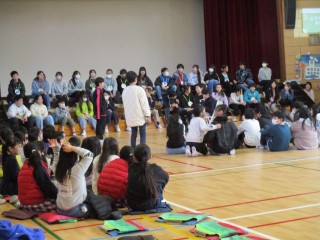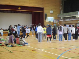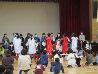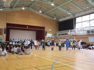 6年生を送る会のオープニングは、6年生の入場です。一人ずつの紹介アナウンスと共に、花のアーチをくぐっていきました。各学年からの出し物は、歌・ダンス・劇・クイズ・応援団と、バラエティに富んていました。どの学年も、6年生への感謝の気持ちと新しい出発を応援する気持ち、そして、お別れがさみしいという気持ちが込められていました。