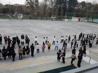 校庭の桜の花が咲き始めた今日、卒業式を行いました。厳粛な雰囲気で式が執り行われ、その後は、校庭で門送りです。33名が、立派に巣立っていきました。今後の活躍、いつまでも応援しています。