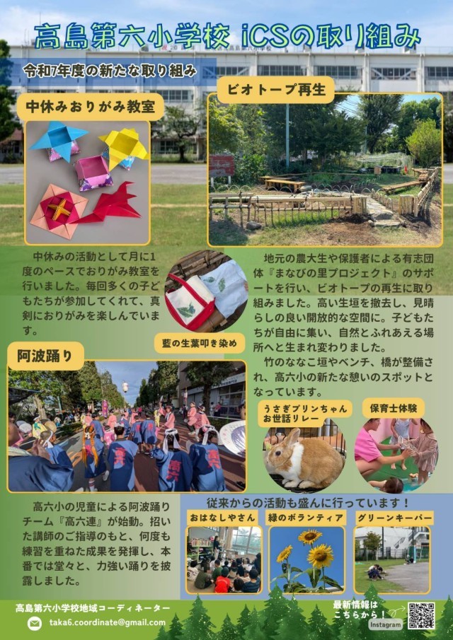 地域コーディネーターを中心とする様々な活動をまとめた資料です。令和7年11月21日に板橋区立グリーンホールで開催される、令和7年度東京都「地域学校協働活動推進フォーラム/コミュニティ・スクール推進フォーラム」にて、パネル展示をする予定です。