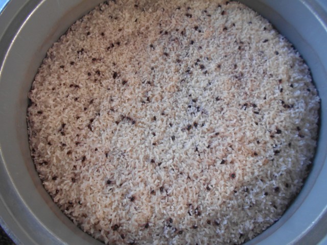 今日は、七五三の行事食として古代米の黒米を使った赤飯を作りました。