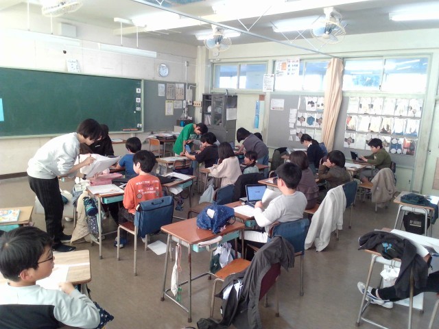 4年生の国語の学習です。学習のまとめとして、「くらしの中の和と洋」に関する新聞づくりに取り組んでいました。くらしの中には、和食と洋食、和服と洋服など、いろいろな場面で「和」と「洋」が大切にされています。