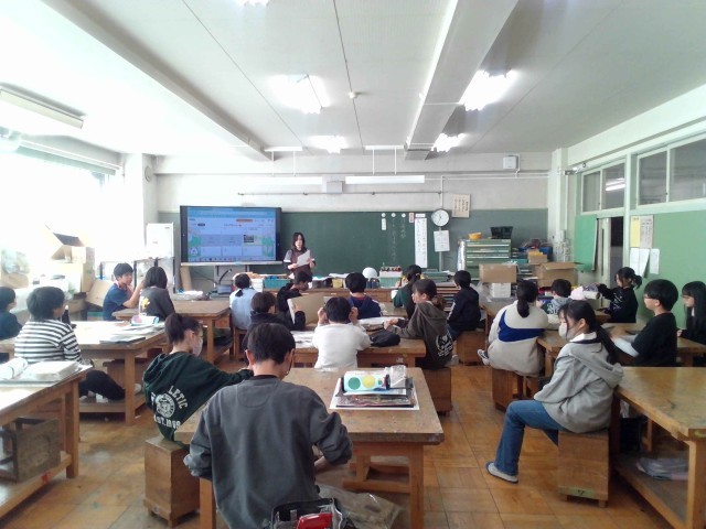 展覧会で出品した立体作品「マイネームボックス」の鑑賞です。めあては、「友だちの作品の良さや美しさを伝え合おう」。素敵なめあてだと思いませんか。