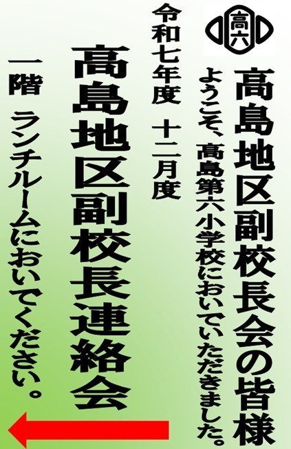どの副校長先生も、熱心に高六小の実践等について耳を傾けてくださり、励みになる時間でした。今後も近隣の学校との連携、協力を大切に、よりよい高島第六小学校をつくっていきたいと考えています。(校長)