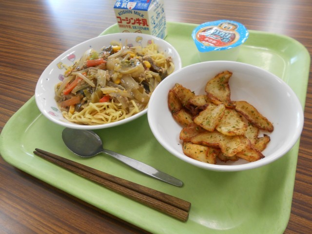 みそラーメン、のり塩フライドポテト、ガリガリくん、牛乳