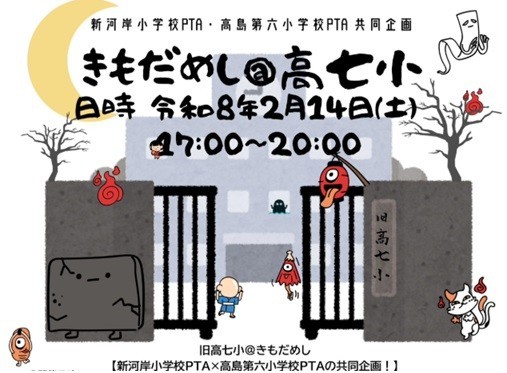 新河岸小学校PTA、高島第六小学校PTAの合同行事「きもだめし@高七小」が本日開催されました。たくさんの申し込みがあったため、明日も開催予定です。申し込み児童は両校併せて125名!子どもたちの驚く声や歓声が響く、旧高七小校舎でした。19年前、高島第七小学校は閉校しました。2000人以上の卒業生がいる、伝統ある大切な学校です。卒業生や地域の方にとっても大切な大切な場所です。そんな旧高七小校舎でPTA行事を開催できたことは、とてもありがたいことです。関係の皆様に感謝申し上げます。