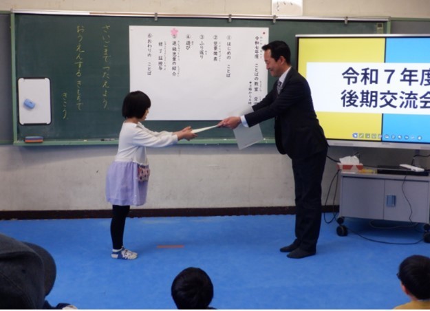 ことばの教室「後期交流会」 公開日 2026/03/15 更新日 2026/03/15 ことばの教室より 3月2日から6日まで後期交流会がありました。この1年間学習した成果を発表し、卒業や退級する児童は校長先生等から修了証を受け取りました。発表が苦手な児童も、がんばって発表することができました。どの子も自分の課題と向き合って、1年間しっかり学習してきたことを感じました。ここで発表した経験が、これからの学校生活での自信につながることを願っています。