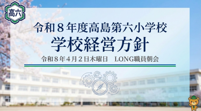 一昨日、4月1日、たくさんの教職員の方々が高島第六小学校に着任してくださいました。とても素敵な教職員の方々ばかりです。校長として、ますますよい高島第六小学校を作っていけることを心から確信しています。