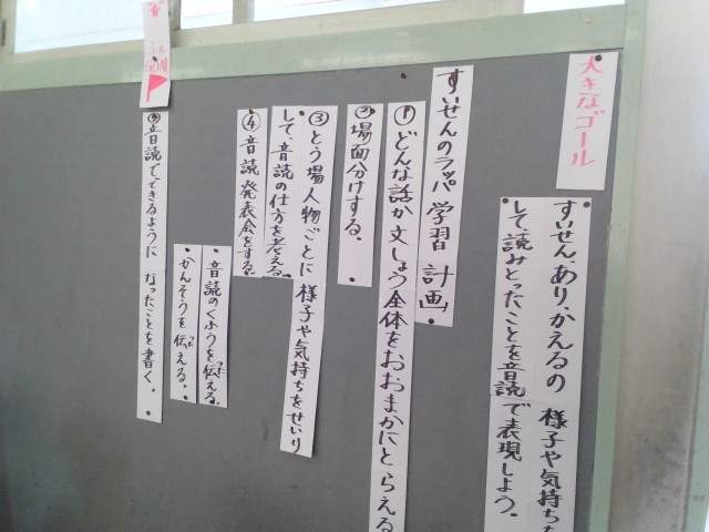 3年生の教室です。学習の足跡が、教室に掲示されていました。子どもたちがふと掲示物を見た時に、学習内容を振り返ることができます。