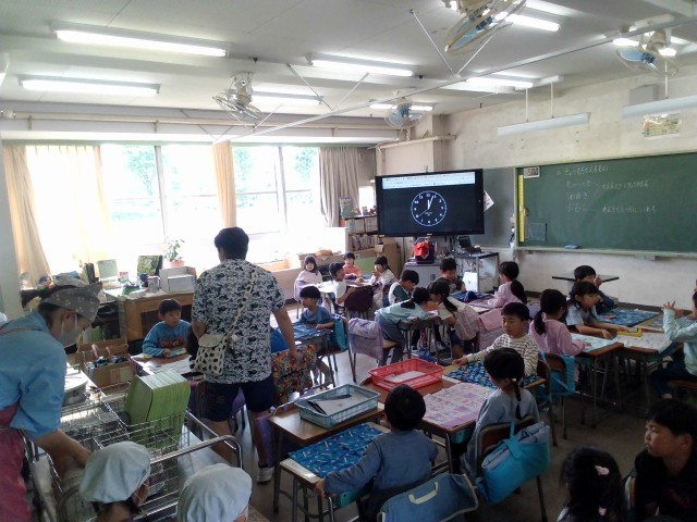1年生の給食準備風景です。給食が始まって数日たちました。子どもたちはだんだんと慣れてきています。給食当番の子どもたちもしっかり準備をしています。給食をとおして、友達と協力して準備することの大切さ、給食を食べる時間を楽しむ態度、そして感謝の気持ちをもって食べ物を食べることなどなど、多くのことを学んでいきます。そう、学校にとって、給食の時間もとても大切な時間なのです。(校長)