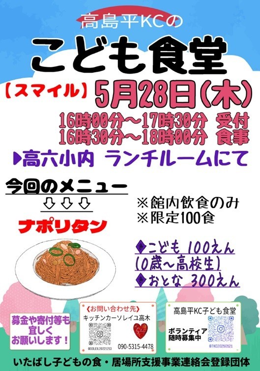 昨年度、高六小で始まった「こども食堂」、今年度も開催します。「こども食堂」が、人と人がつながる架け橋、子どもたちや関係の方々にとっての居心地のよい一つの空間につながっていければと願っています。(校長)