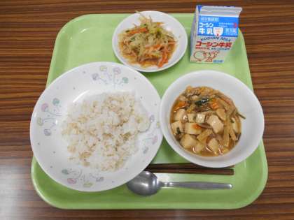 麦ごはん・四川豆腐・バンサンスウ・牛乳