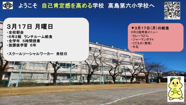 今日の給食は、6年2組の子どもたちが考えた献立です。(校長)