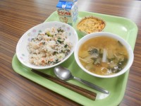 【本日のメニュー】わかめごはん、菊花蒸し、吉野汁、牛乳今日はの文化の日の行事食で...