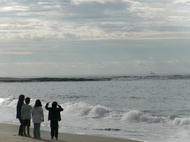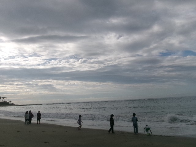 10月の帰京前の浜散歩も今日が最後。涼しい気候の中、流木の上でじゃんけんをしたりと楽しめたようです。