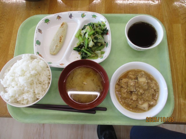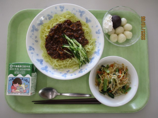 10月4日(土)おやつ~10月5日(日)昼食 公開日 2025/10/09 更新日 2025/10/09 昼食のご紹介 10月4日(土)おやついそべもち、麦茶10月4日(土)夕食ごはん、ビーフンスープ、マーボーなす、魚のいそべあげ、和風サラダ、あまじゃっこ10月5日(日)朝食ごはん、みそ汁、豆腐の肉みそかけ、ごまあえ、笹かまぼこ10月5日(日)昼食ジャージャー麺、牛乳、切り干しのナムル、白玉あずき写真は夕・朝・昼の順です。