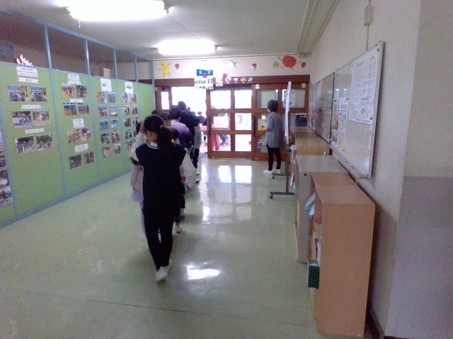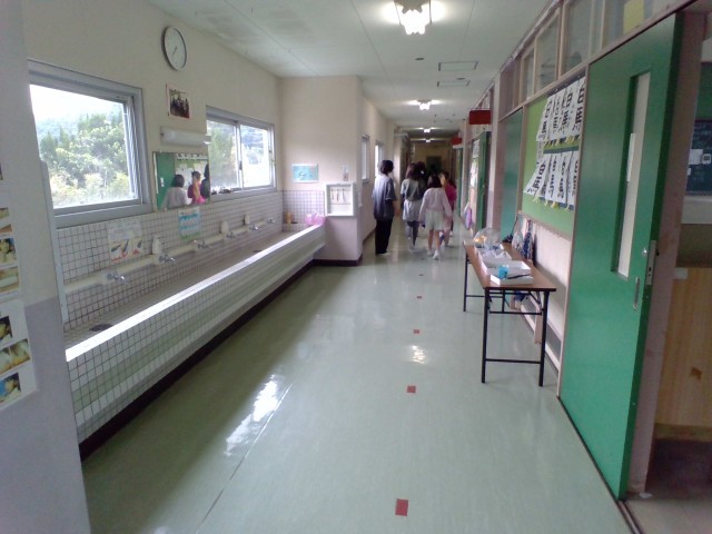 教室に荷物を置いたら手を洗って食堂へ向かいます。