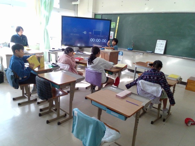 4年生は漢字学習を書き順を確認しながら行いました。