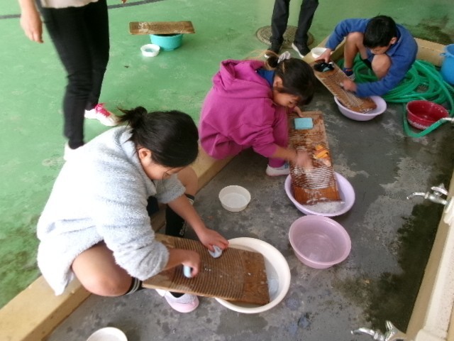 1月27日(火) 3年 社会 洗濯板体験 公開日 2026/01/27 更新日 2026/01/27 学校生活 3年 社会科「昔と今の暮らし」の学習で、洗濯板体験をしました。昔の人の大変さと、今の便利な暮らしを、実体験を通して学ぶことができました。