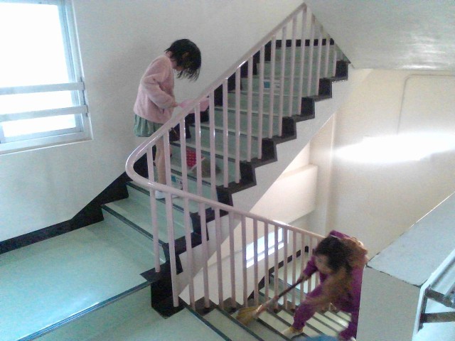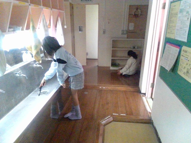 自分たちが使った場所をきれいにしています。