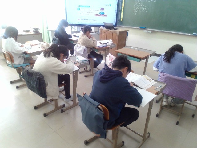 「あまりのあるわり算の問題を説明する」をめあてに自分のペースで学習しています。