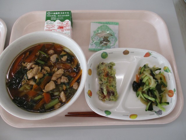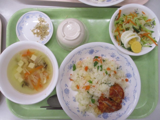 2月3日(火)おやつ~2月4日(水)昼食 公開日 2026/02/04 更新日 2026/02/04 昼食のご紹介 2月3日(火)おやつきな粉豆乳蒸しパン、お茶2月3日(火)夕食ピラフ、きのこスープ、スパイシーチキン、イタリアンサラダ、あまじゃっこ2月4日(水)朝食ごはん、みそ汁、あつ焼きたまご、ちくぜんに、ふりかけ2月4日(水)昼食とりなんばん、牛乳、ちくわのいそべあげ、大根サラダ、お魚アーモンド写真はおやつ・夕・朝・昼の順です。 +1