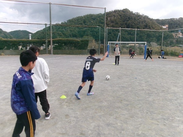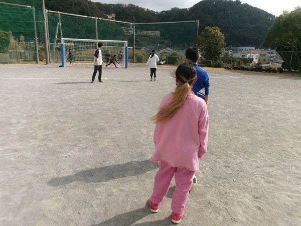 全く経験の無い児童も参加することもあり、練習は体操から始まり、ペアになってパスの練習や、グループでシュート練習をするなど基礎をしっかりと練習しました。お互いに声をかけ合い、とても良い雰囲気で練習することができました。