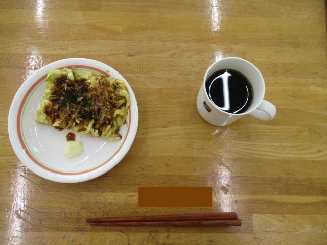 お好み焼き、お茶
