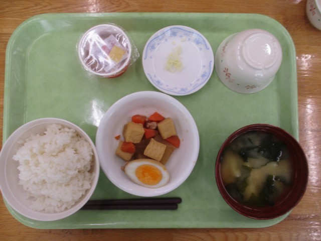 ごはん、みそ汁、なっとう、大根に、にたまご