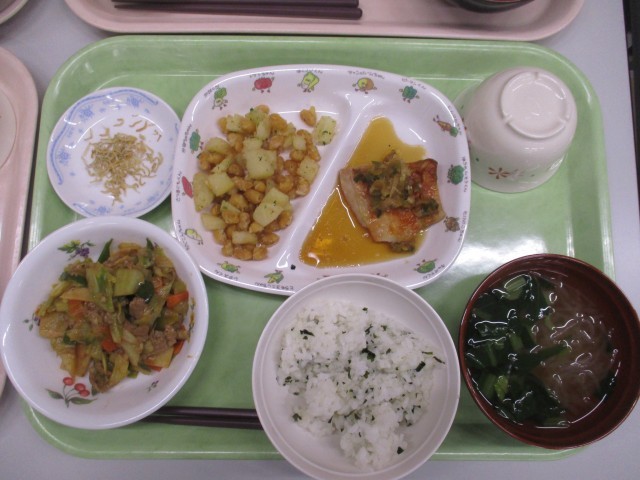 2月22日(日)おやつ~2月23日(月)昼食 公開日 2026/02/26 更新日 2026/02/26 昼食のご紹介 2月22日(日)おやつチョコバナナ、カルピス2月22日(日)夕食わかめごはん、すまし汁、鶏のネギソース、ホイコーロー、青のりビーンズポテト、あまじゃっこ2月23日(月)朝食ごはん、みそ汁、あつ焼きたまご、ちくぜんに、ボイル野菜2月23日(月)昼食カレーライス、牛乳、ごまドレッシングサラダ、バナナ写真はおやつ・夕・朝・昼の順です。 +1