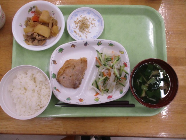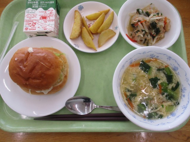 2月23日(月)おやつ~2月24日(火)昼食 公開日 2026/02/26 更新日 2026/02/26 昼食のご紹介 2月23日(月)おやつ模擬店2月23日(月)夕食ごはん、すまし汁、豚のごまだれ焼き、肉じゃが、大根サラダ、あまじゃっこ2月24日(火)朝食ごはん、みそ汁、しゅうまい、じゃが芋のきんぴら、ボイル野菜2月24日(火)昼食フィッシュバーガー、牛乳、フレンチポテト、かき玉スープ、大根とツナのサラダ写真は夕・朝・昼の順です。